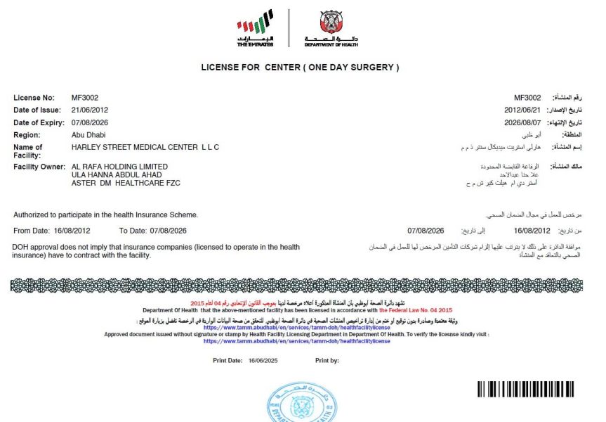 Copyright © Harley Street Medical Centre 2025 | MOH : JY9VD33B-180825 - 15/08/2026